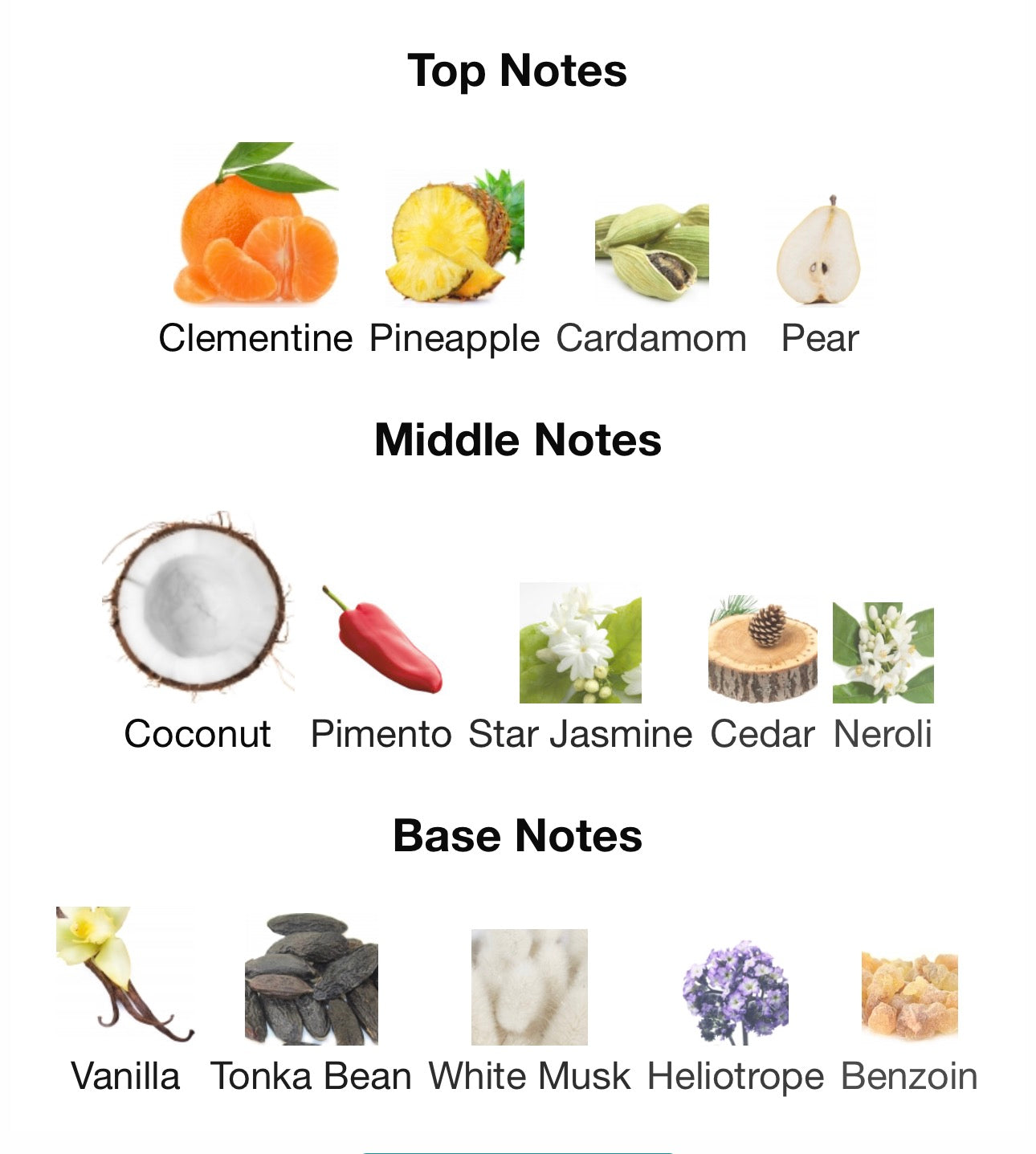 Le note di Cuore sono: Cocco - Pimento - Gelsomino Stellato - Legno di Cedro - Neroli