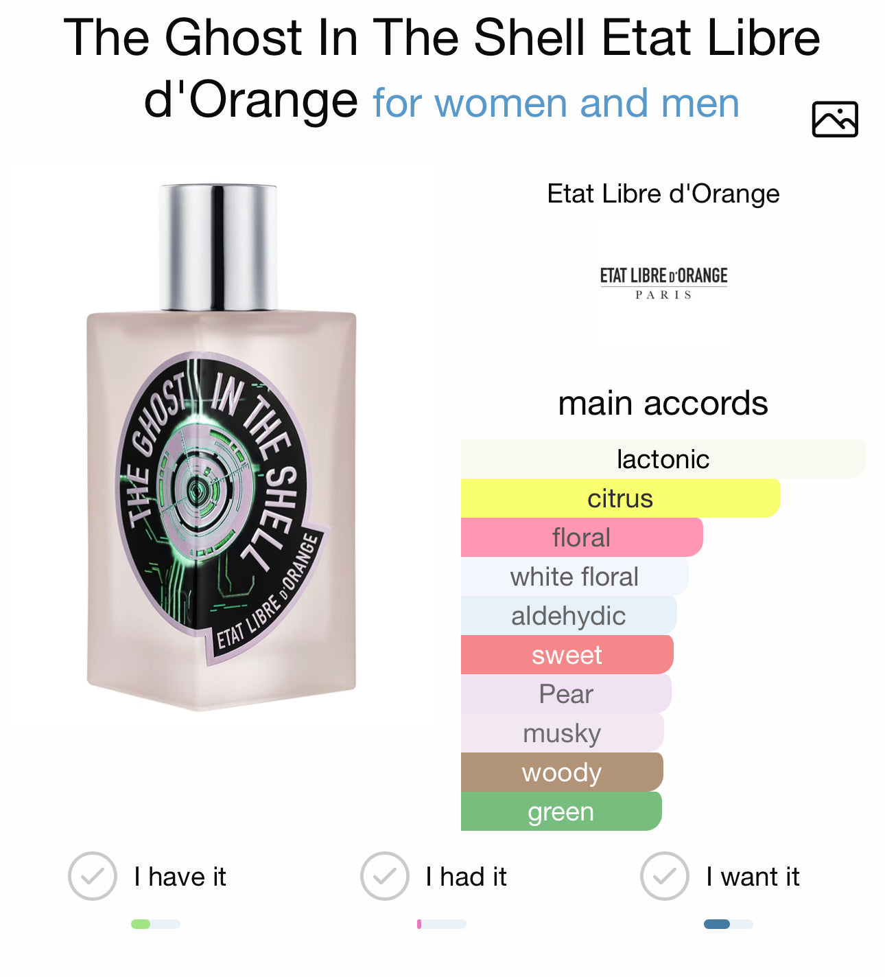 The Ghost in the Shell di Etat Libre d'Orange è un fragranza del gruppo lattonico, agrumato unisex. È un Eau de Parfum.