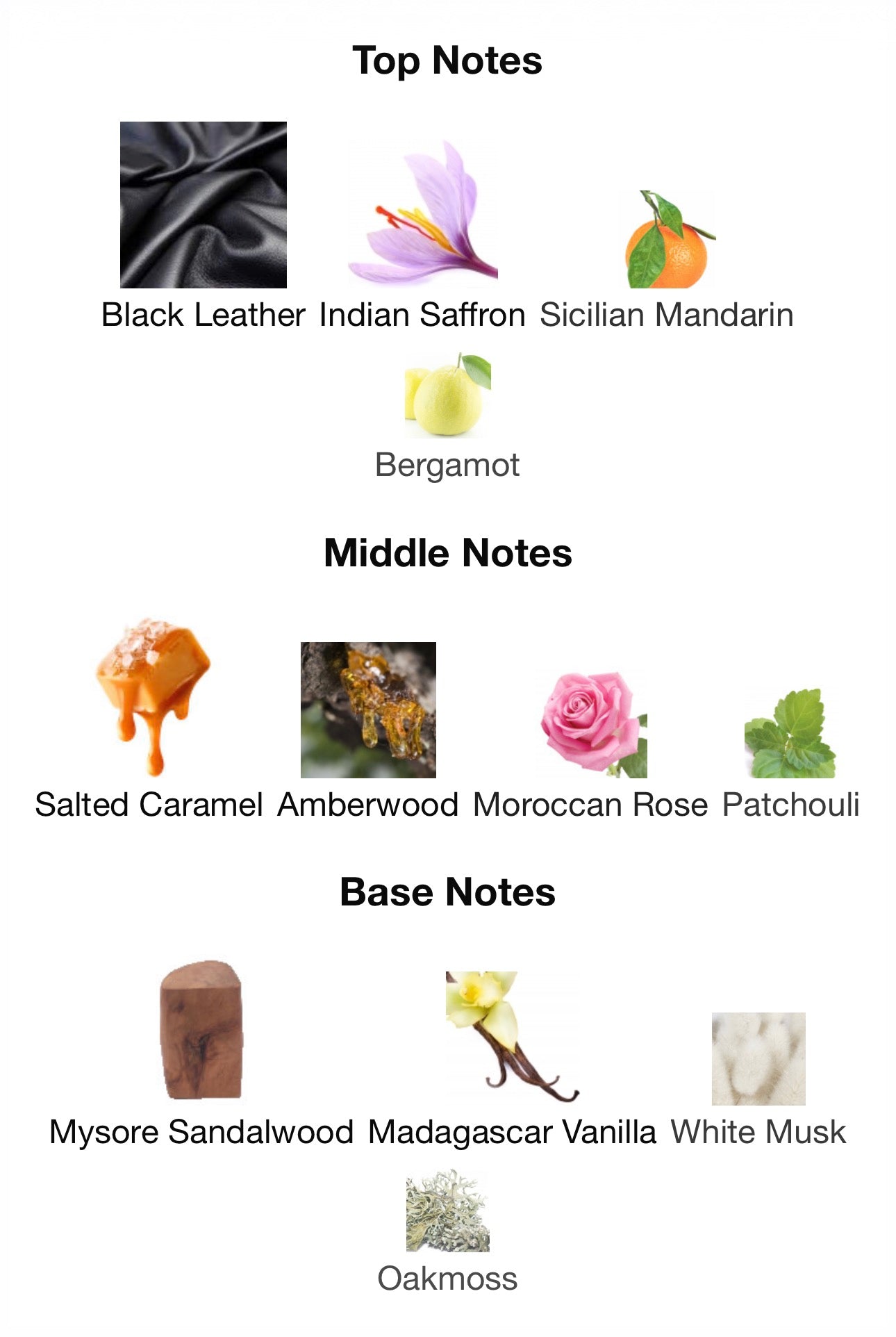 Le note di Testa sono: Zafferano - Cuoio nero - Bergamotto - Mandarino