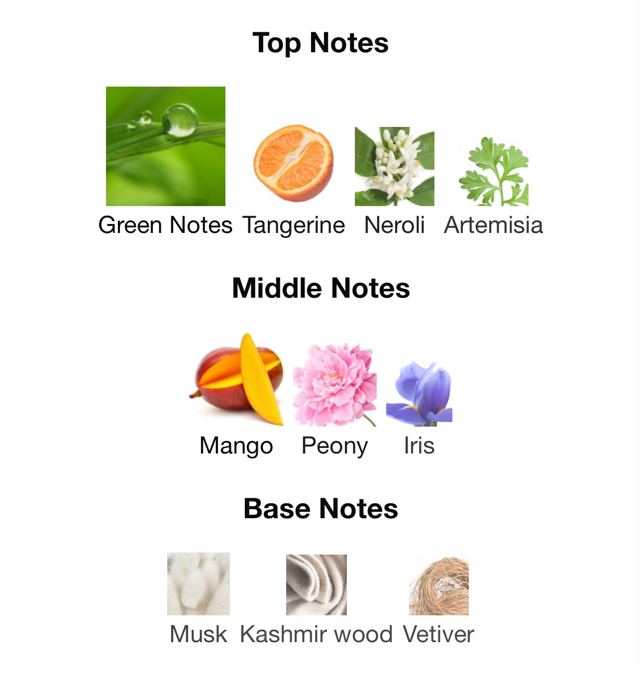 Le note di Testa sono: Note Verdi - Tangerino - Neroli - Artemisia